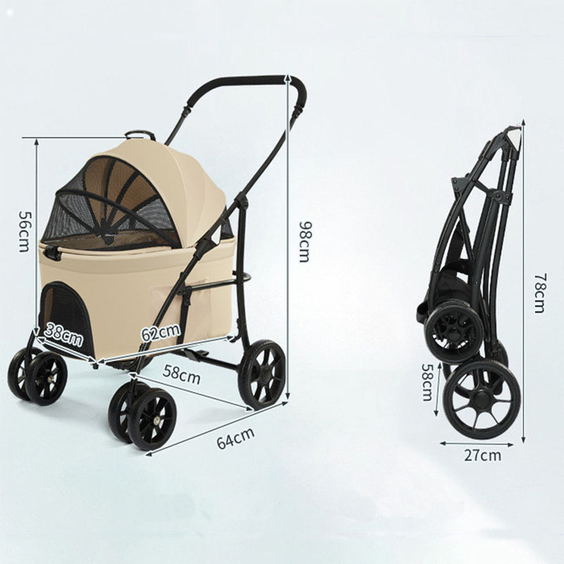 Este Cochecito para mascotas con portabebé desmontable y diseño plegable con un solo clic Ofrece un viaje suave con estabilizadores antichoque y ruedas de goma resistentes. Funciona también como transportín y asiento de coche, garantizando la seguridad con cuerdas de fijación y cierre sin cremallera. La estructura de acero al carbono y la capota de lino ofrecen comodidad y durabilidad para mascotas pequeñas y medianas.