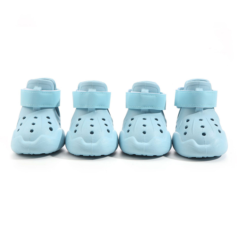 Bolo™ Botas transpirables de EVA resistentes al agua para pavimento. Mida la pata más ancha estando de pie y elija una talla más grande para mayor comodidad. La suela de silicona de alta calidad es impermeable y antideslizante, protegiendo las patas del pavimento caliente, objetos afilados y la humedad. Ligeras, con aberturas amplias y velcro ajustable para ponérselas y quitárselas fácilmente. Se limpian con agua; se secan más rápido después de ir a la playa. El moderno estilo de sandalia cuenta con orificios perforados para ventilación, manteniendo las patas frescas y protegidas. Consejo: Si al principio su perro camina de forma extraña, ¡déle premios para que se adapte rápidamente!