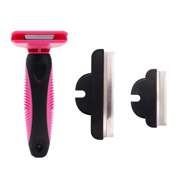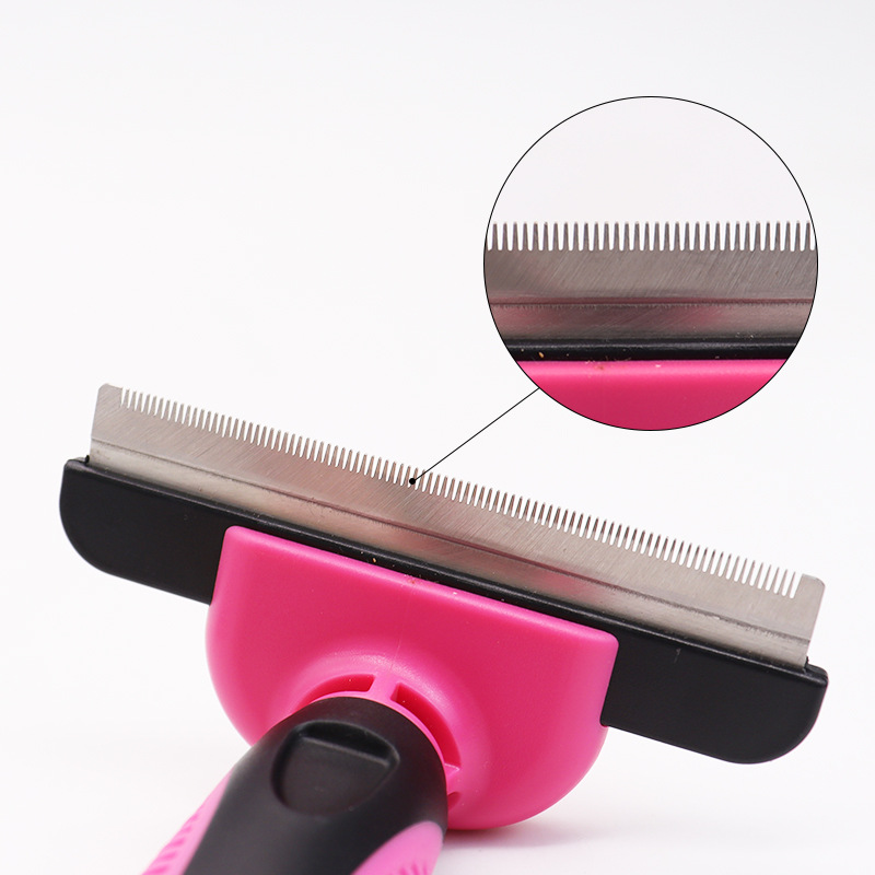 Este peine para el cuidado de mascotas Cuenta con una cuchilla curva para mayor comodidad, dientes en forma de V para eliminar el 95 % del pelo suelto y una estructura de acero inoxidable y ABS. Su mango antideslizante facilita su uso. Disponible en dos tamaños y cuatro colores (azul claro, azul oscuro, rosa y naranja) para satisfacer las necesidades de tu mascota.