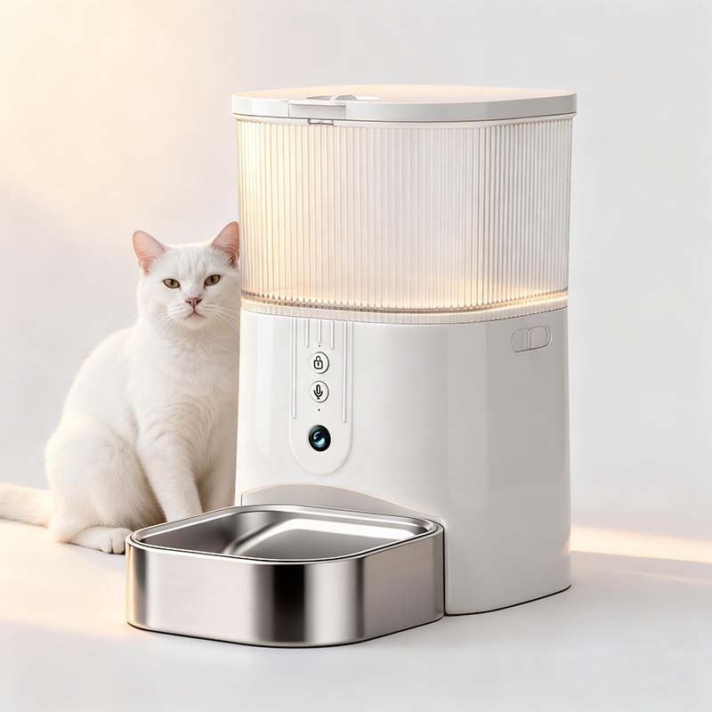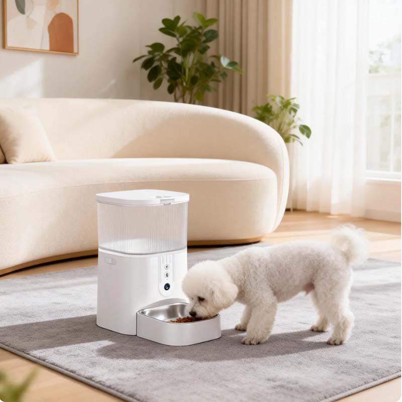 Sí. Graba un mensaje de voz personal de 10 segundos (p. ej., el nombre de tu mascota + "¡Hora de cenar!") que se reproduce automáticamente a la hora de comer para atraerla. La cámara HD integrada te permite ver el video en vivo a través de la aplicación, para que puedas ver a tu mascota comer e incluso interactuar a distancia.